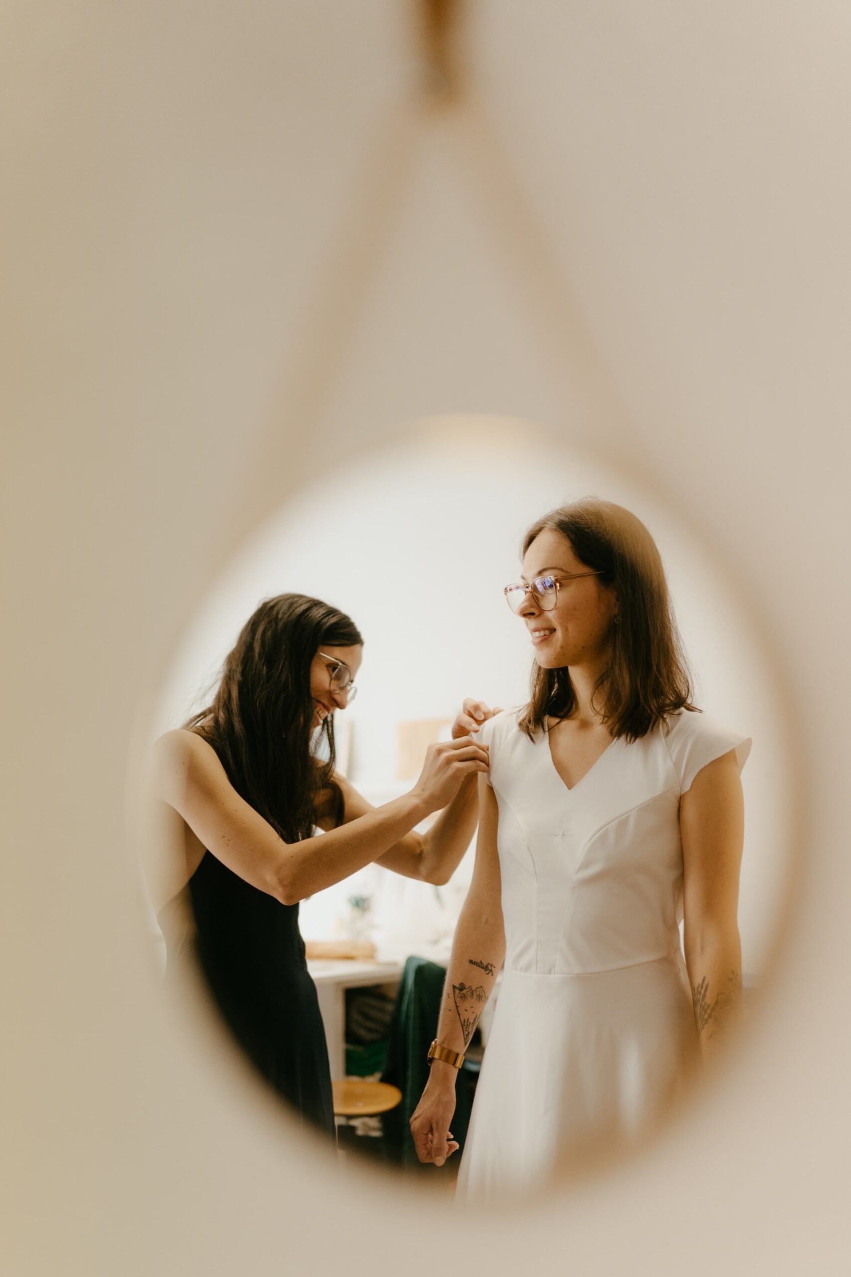 Dommage de voir ta robe de mariée finir dans ton armoire ! J’ai envie de t’offrir la possibilité de la penser autrement, comme un vêtement avant tout, confortable, dans lequel on peut bouger, être soi-même.